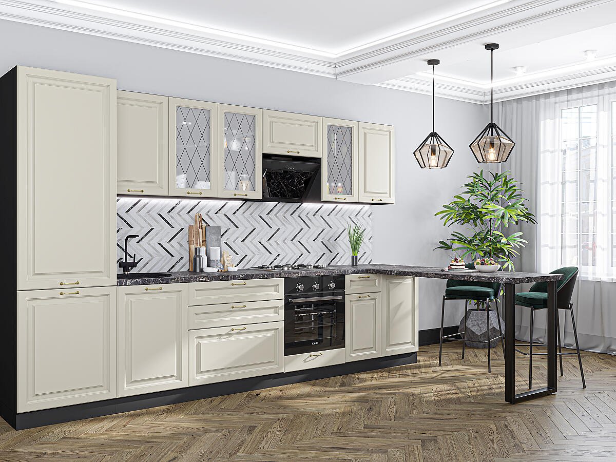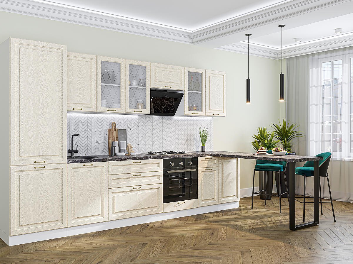 Ницца-02 (2140х3300х600) Белый/Дуб крем исполняется в классическом стиле и спокойных цветах. Модель сочетает в себе простоту и функциональность, но при этом не выглядит громоздко. Она гармонично впишется в пространство, не утяжеляя его.